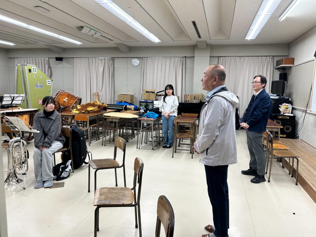 OB・OGバンドの応援に〜練習時に差し入れ 後援会の活動 2025.10.262025.11.29 OB・OGバンドが秋の神戸市吹奏楽祭に出演するにあたり、練習をしています。後援会より、練習時に差し入れを行いました。お伺いした際は少ない人数でしたが、喜んでいただけました。何回かの練習があるようですので、その都度、配っていただくことになりました。本番が楽しみですね。 2025年10月26日(日) 滝川第二高等学校にて